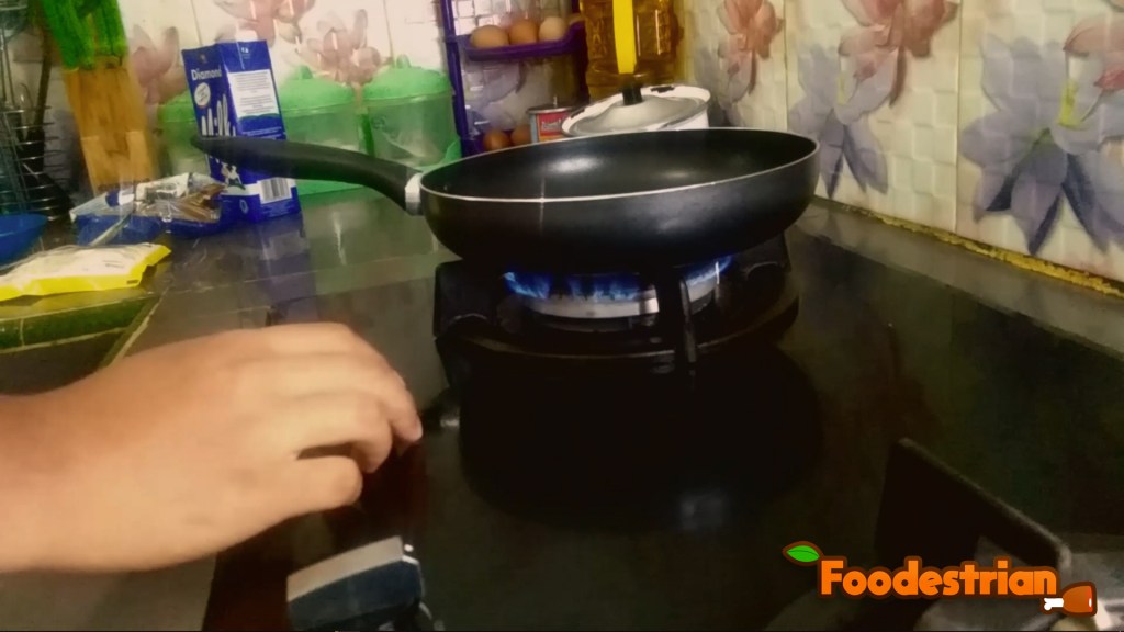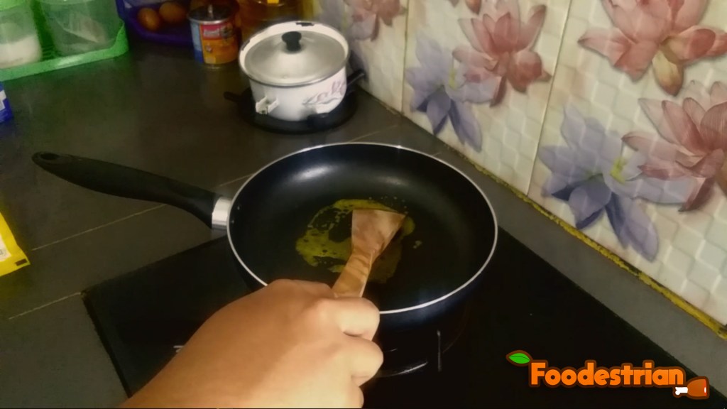 - Belilah teflon terlebih dahulu (canda). Langkah pertama, panaskanlah teflon. Buy teflon first (just kidding). First step, heat the teflon.